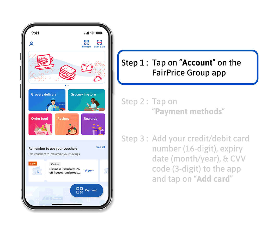 Tap on “Payment” (either top or bottom) on the FairPrice Group app