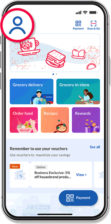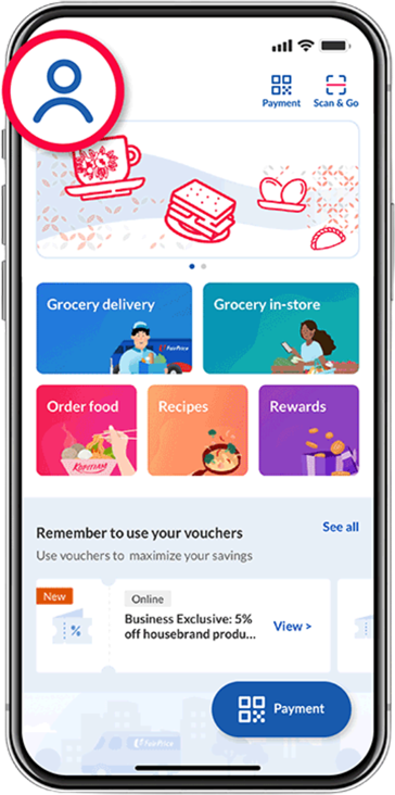 Tap on “Account” on the FairPrice Group app